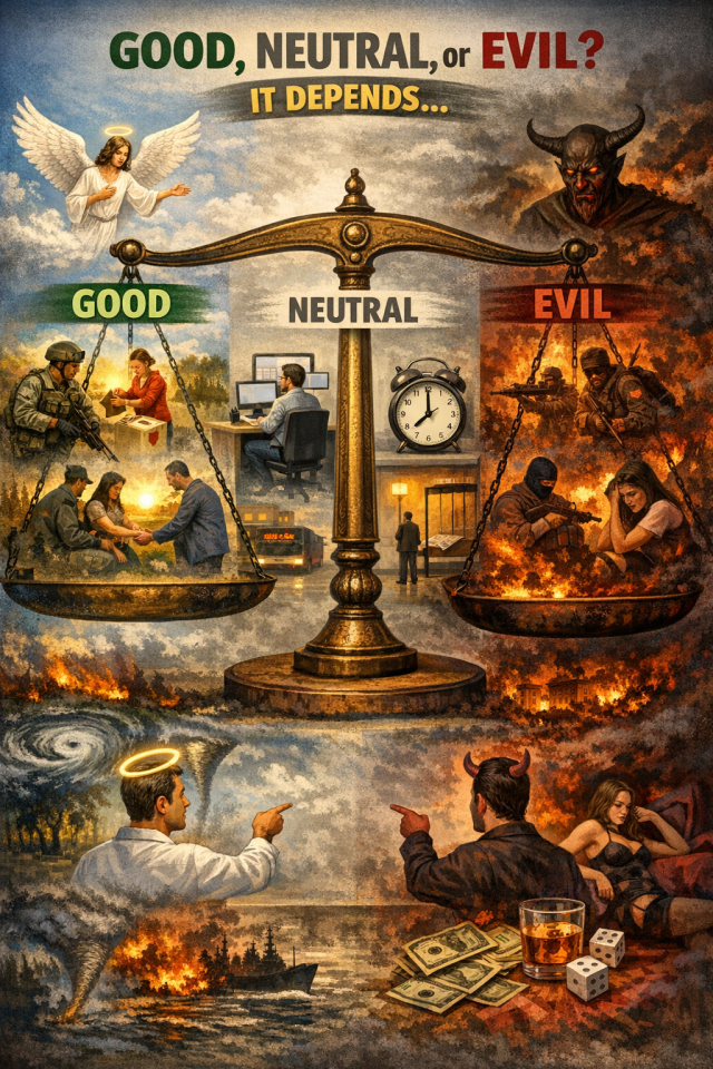 Is every thought, word, and action judged to be either good or evil? Or is there neutral ground? The short answer is: it depends. It depends on what standard of measurement is used to determine good, evil, or neutral.